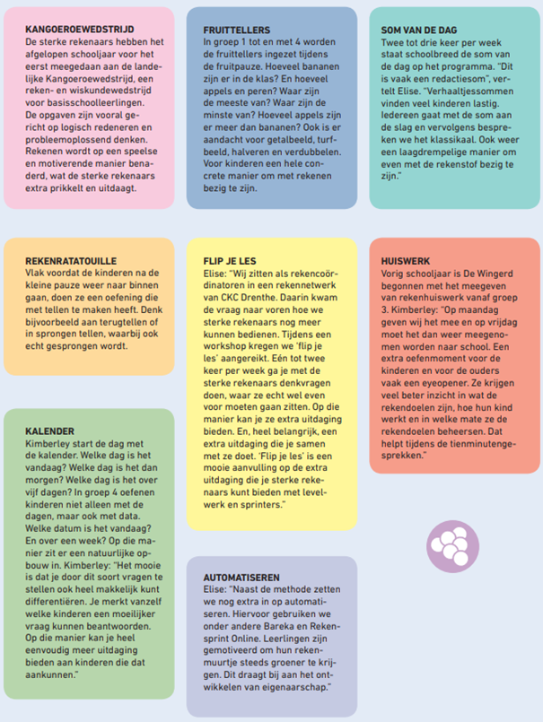Op De Wingerd oefenen de kinderen op allerlei manieren met rekenen buiten de reguliere lessen om. Een greep uit het aanbod: